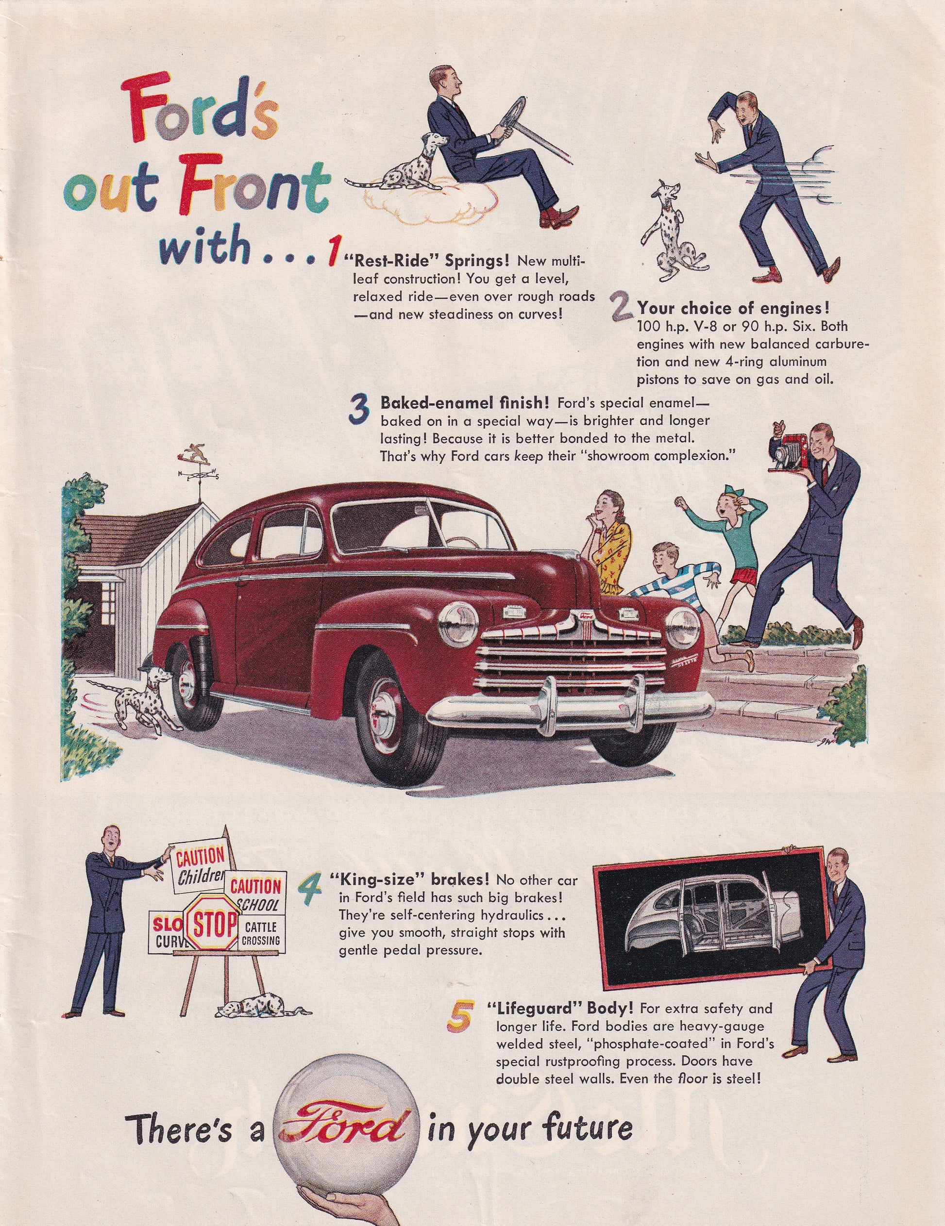 1946 Original Vintage Automobile Magazine Ad - Rare Americana - Ford Out Front