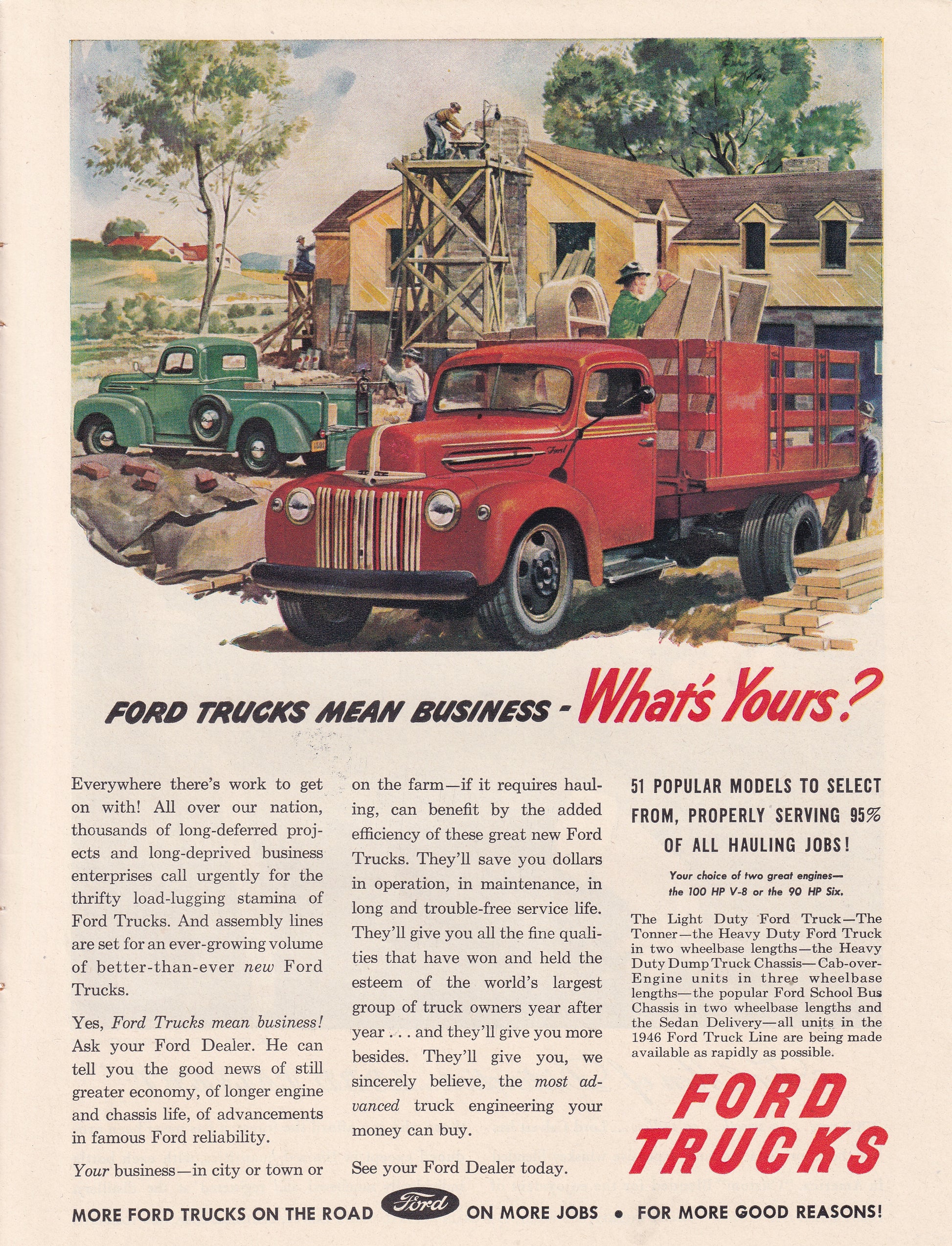 1946 Original Vintage Automobile Magazine Ad - Rare Americana - Ford Trucks Red Stake Body