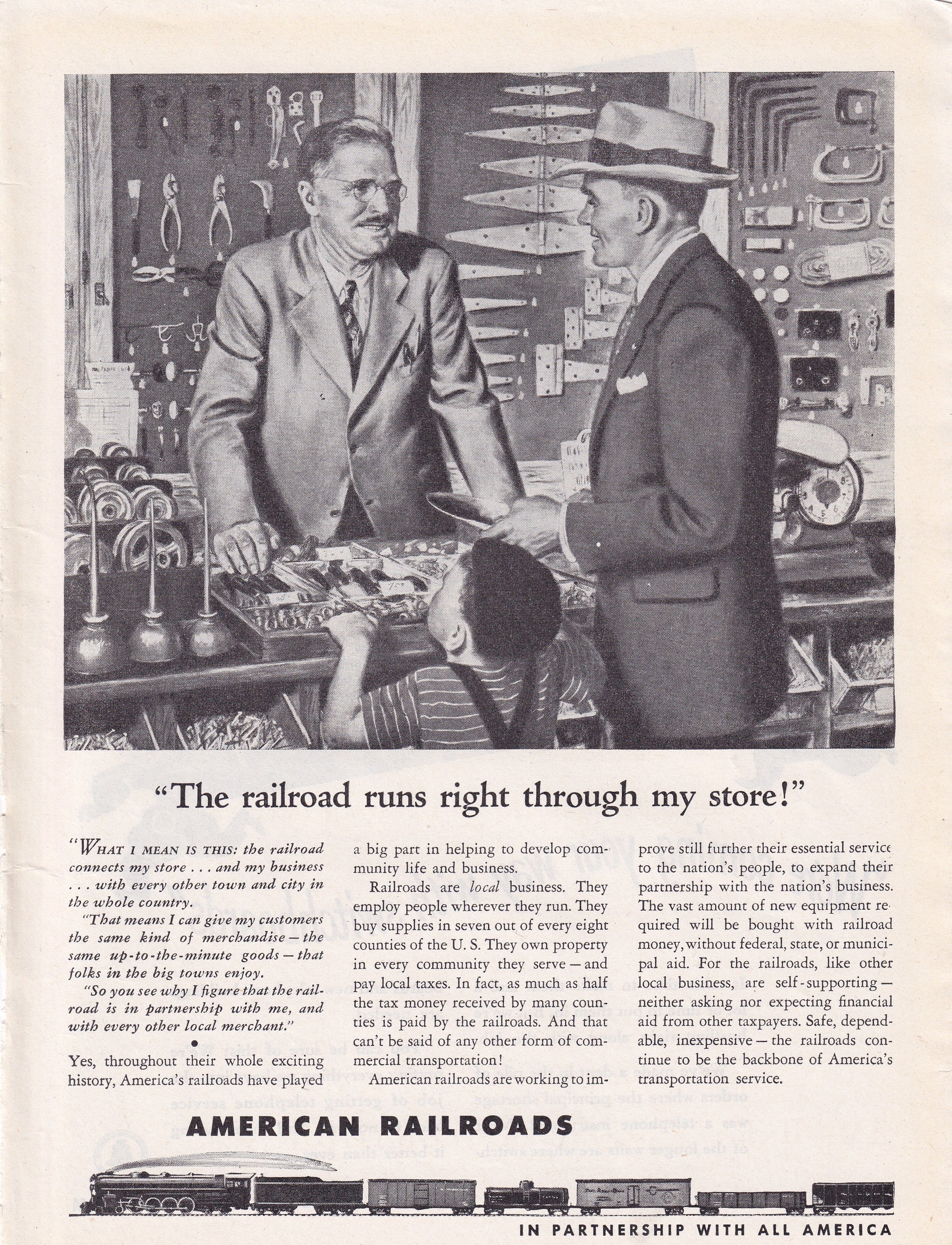 1946 Original Vintage Magazine Ad - Rare Americana - American Railroads Hardware Store