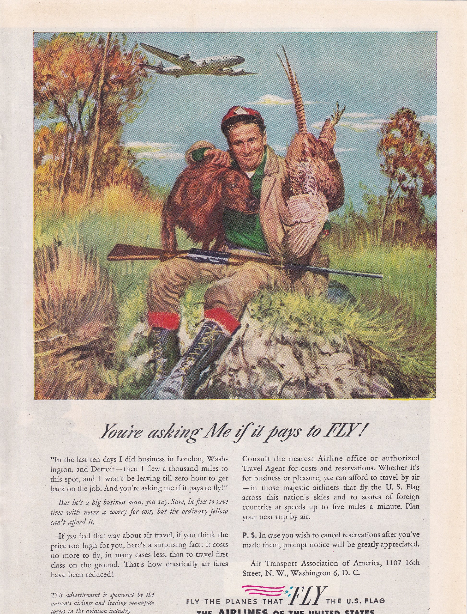 1946 Original Vintage Magazine Ad - Rare Americana - Airlines of the United States Hunting Dog