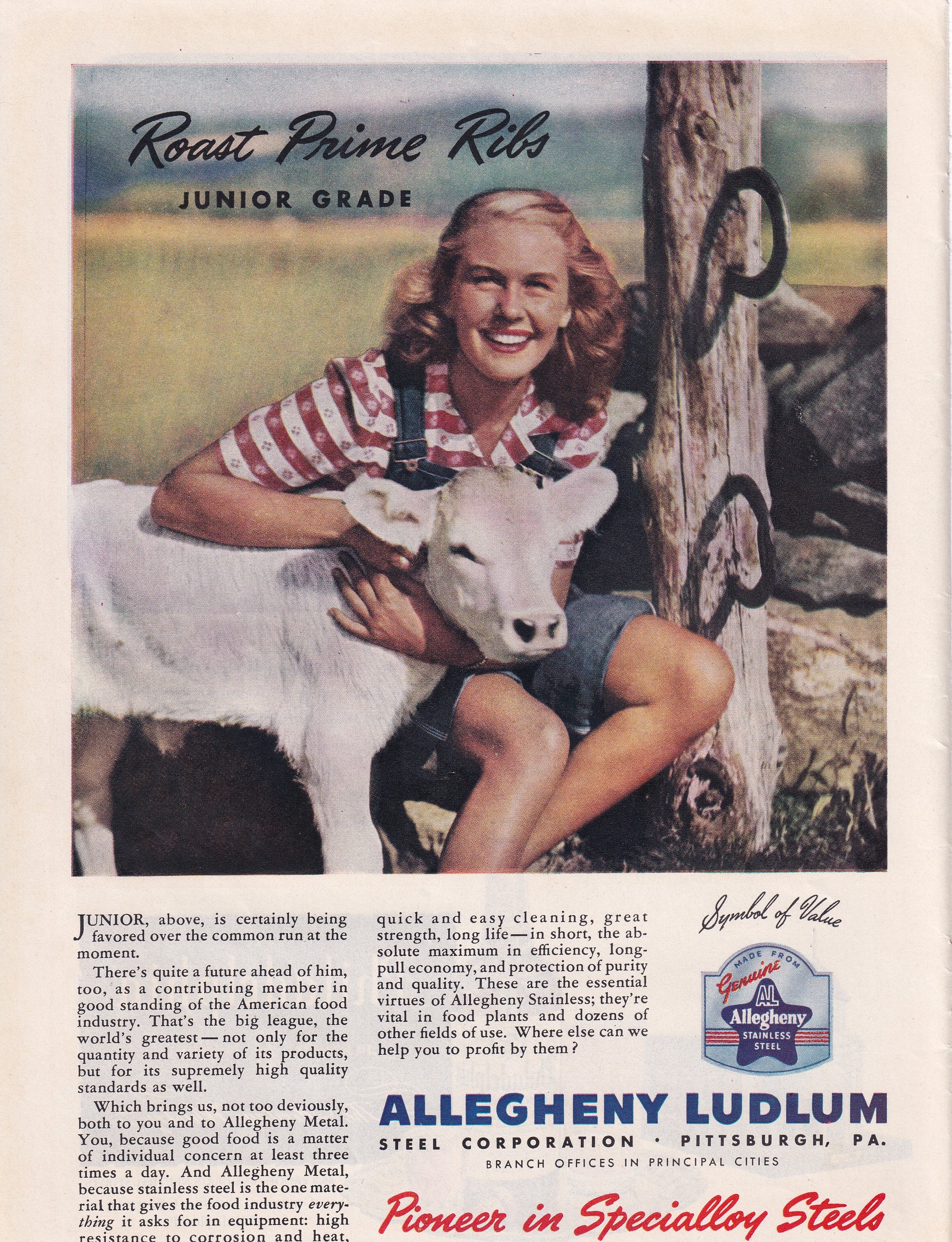 1946 Original Vintage Magazine Ad - Rare Americana - Allegheny Ludlum Young Farm Girl