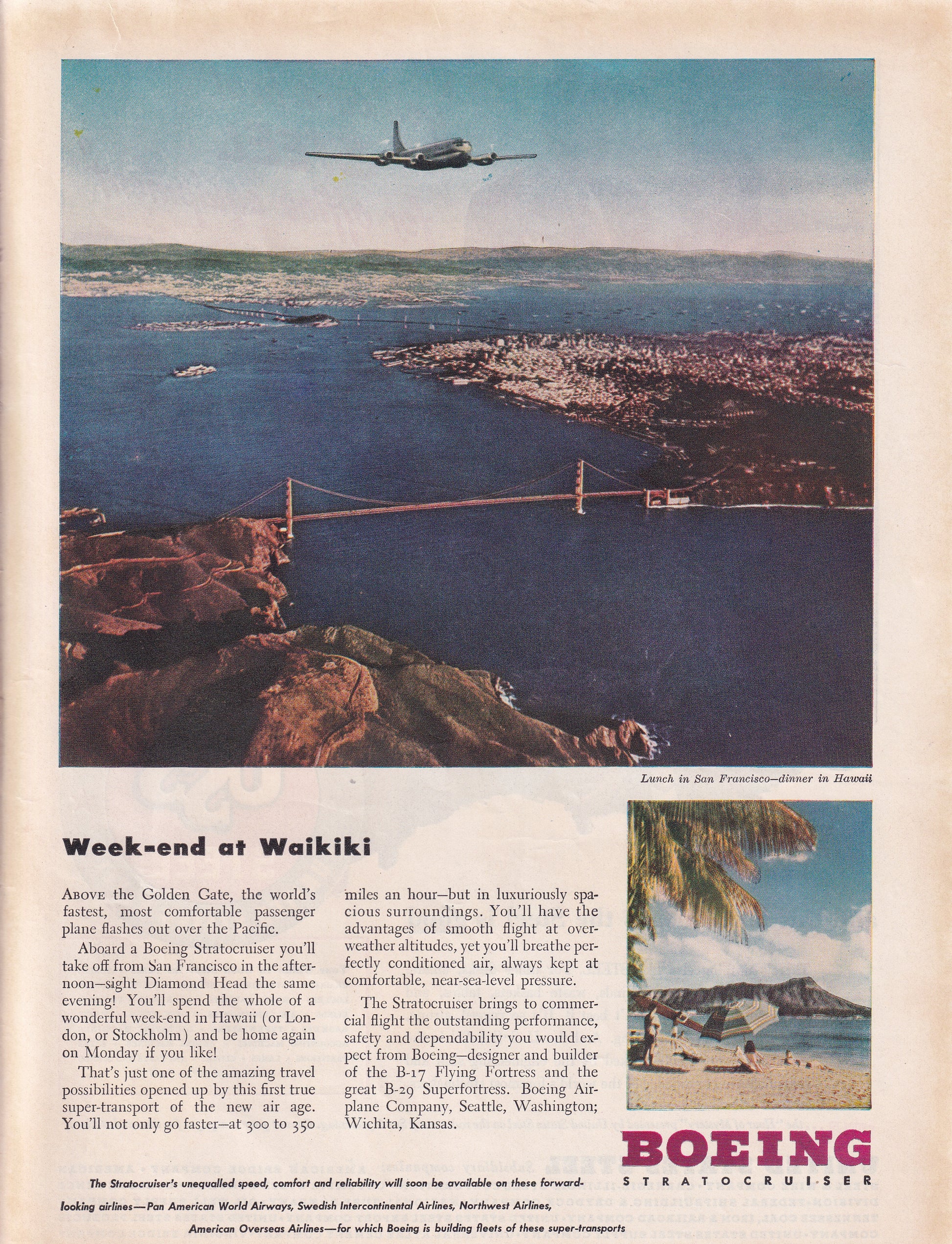 1946 Original Vintage Magazine Ad - Rare Americana - Boeing Stratocruiser Weekend at Waikiki