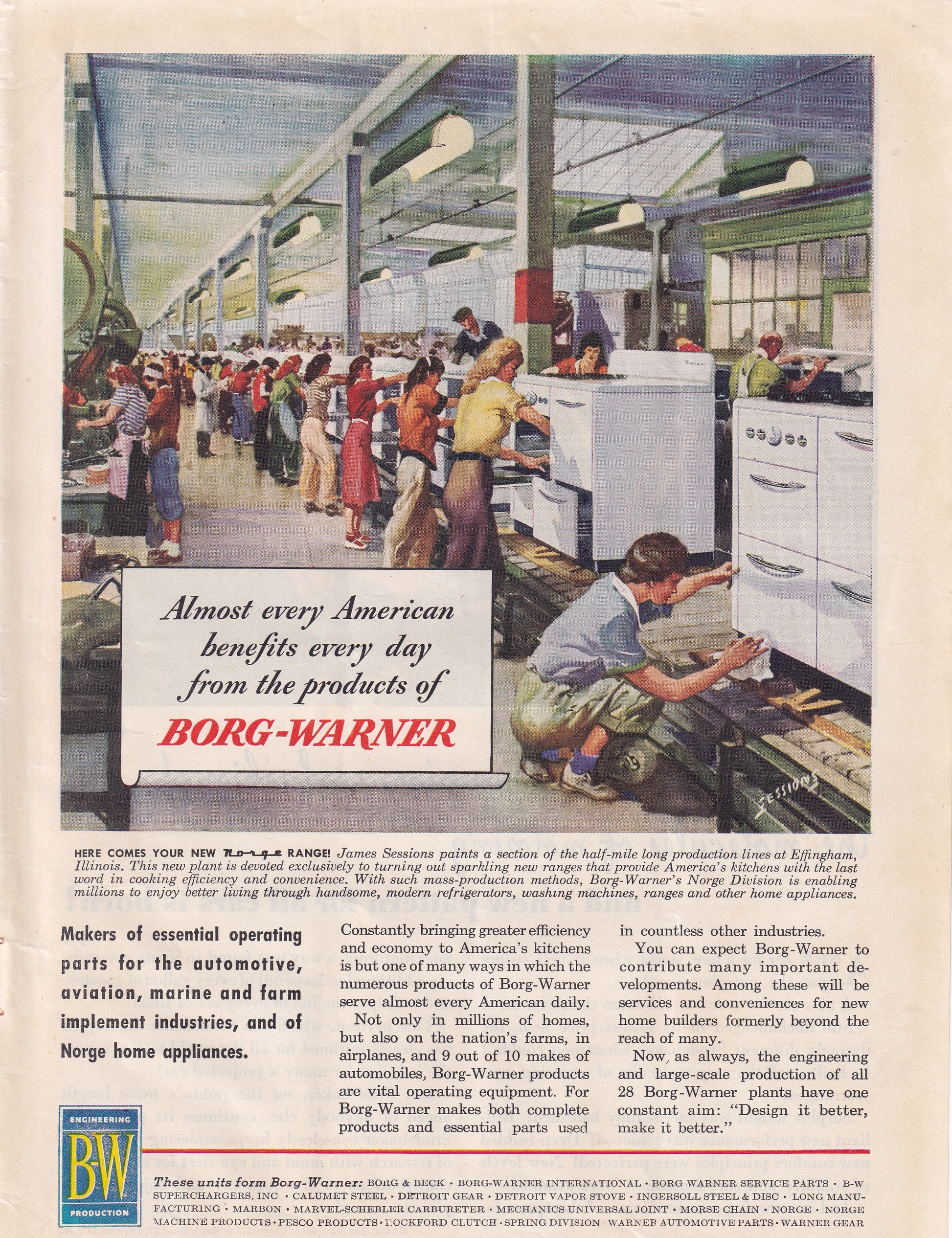1946 Original Vintage Magazine Ad - Rare Americana - Borg Warner All Americans Benefit Women Making Appliances