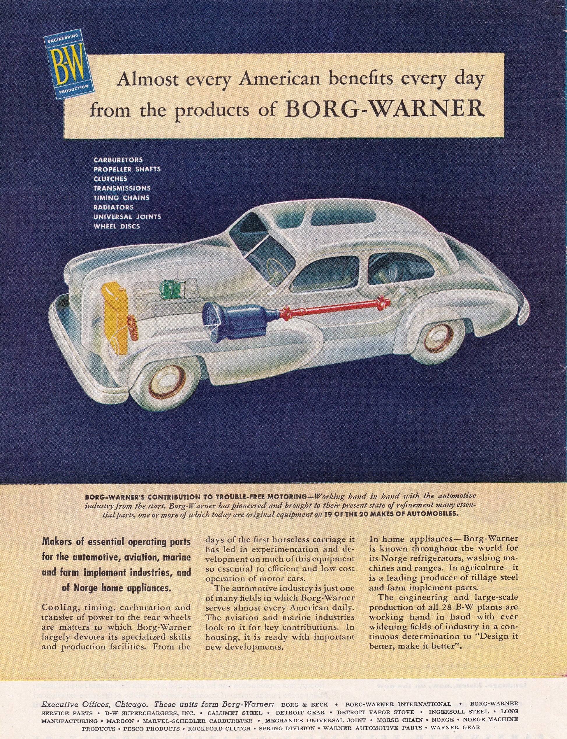 1946 Original Vintage Magazine Ad - Rare Americana - Borg Warner Almost Every American Beneftis From Our Prodcuts Car