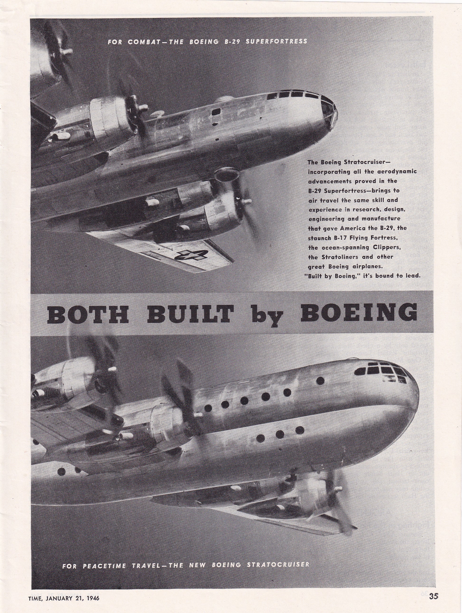 1946 Original Vintage Magazine Ad - Rare Americana - Both Built by Boeing