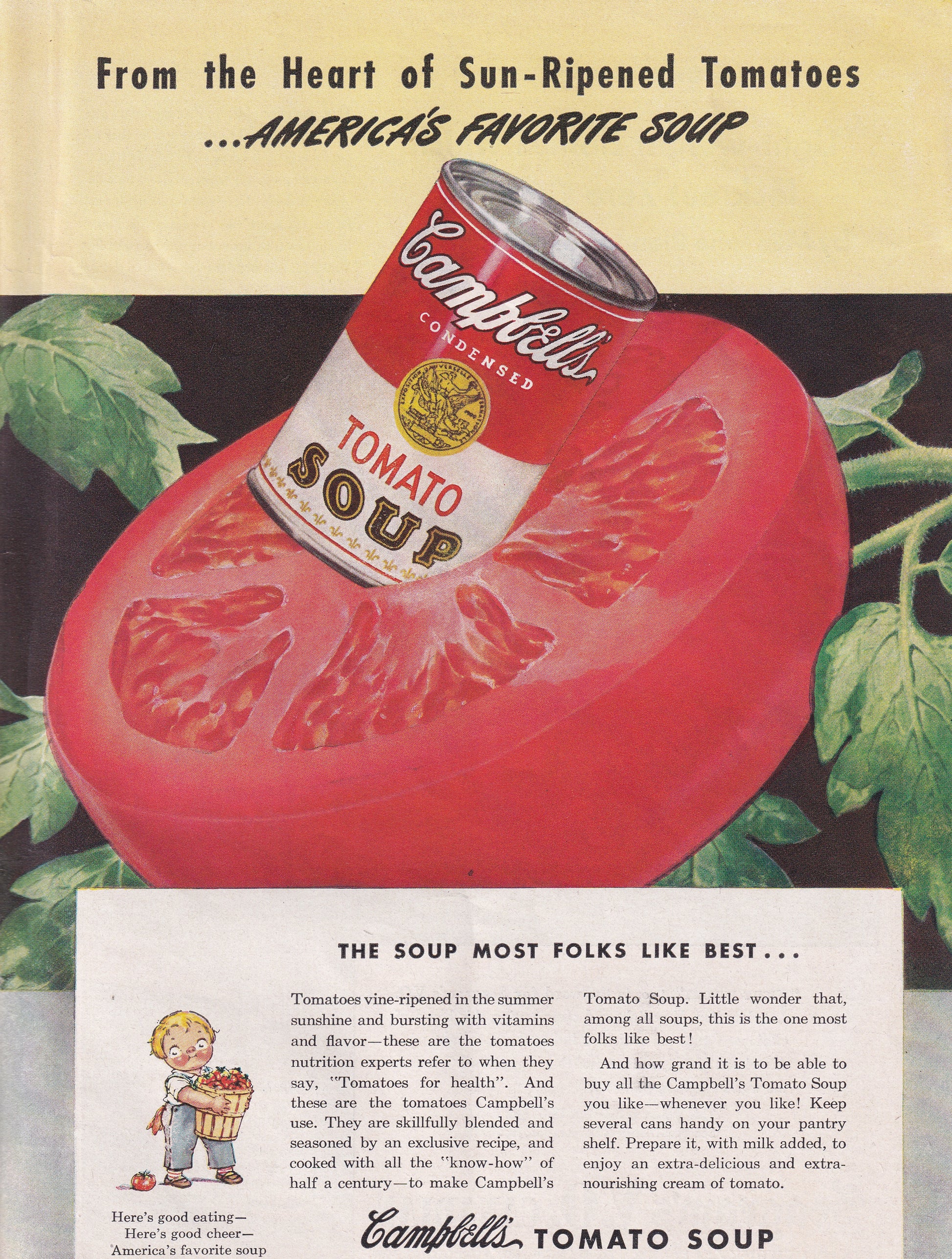 1946 Original Vintage Magazine Ad - Rare Americana - Campbell's Tomato Soup From the Heart of Tomatoes