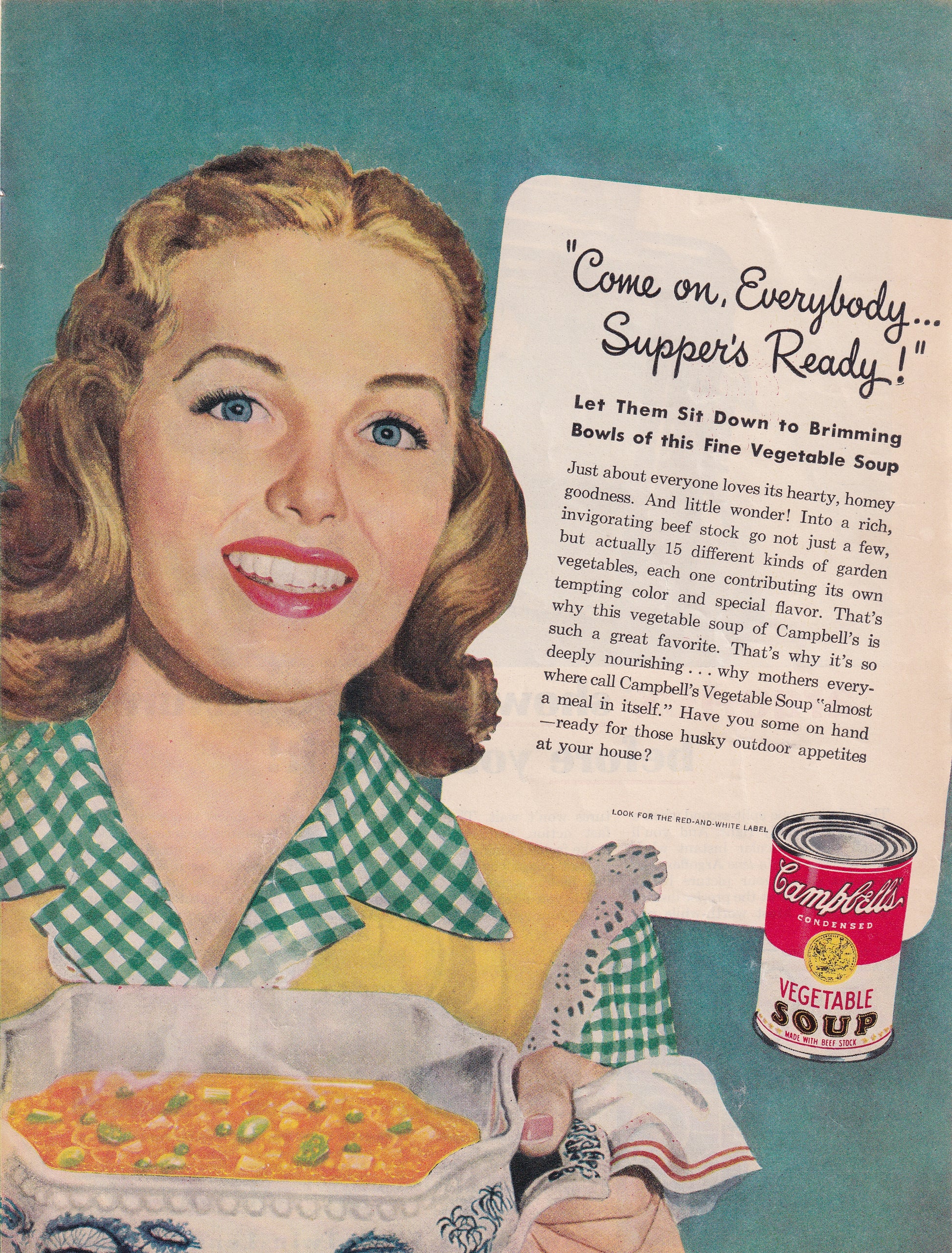 1946 Original Vintage Magazine Ad - Rare Americana - Campbell's Vegetable Soup Mom Supper's Ready