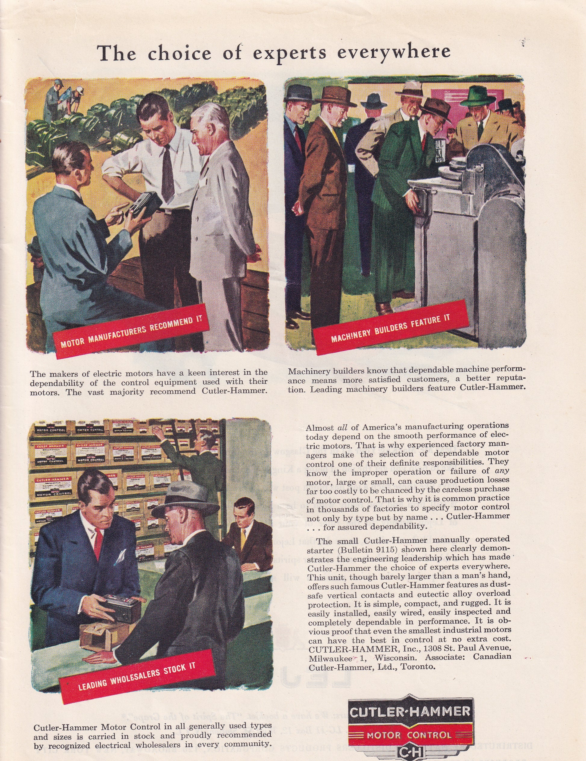1946 Original Vintage Magazine Ad - Rare Americana - Cutler Hammer Motor Control The Choice of Experts