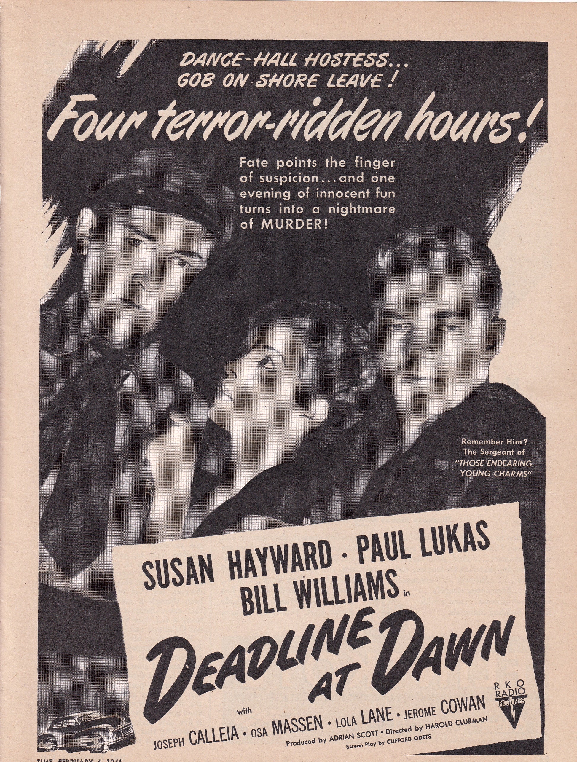1946 Original Vintage Magazine Ad - Rare Americana - Deadlineat Dawn Movie Paul Lukas Susan Hayward Bill Williams