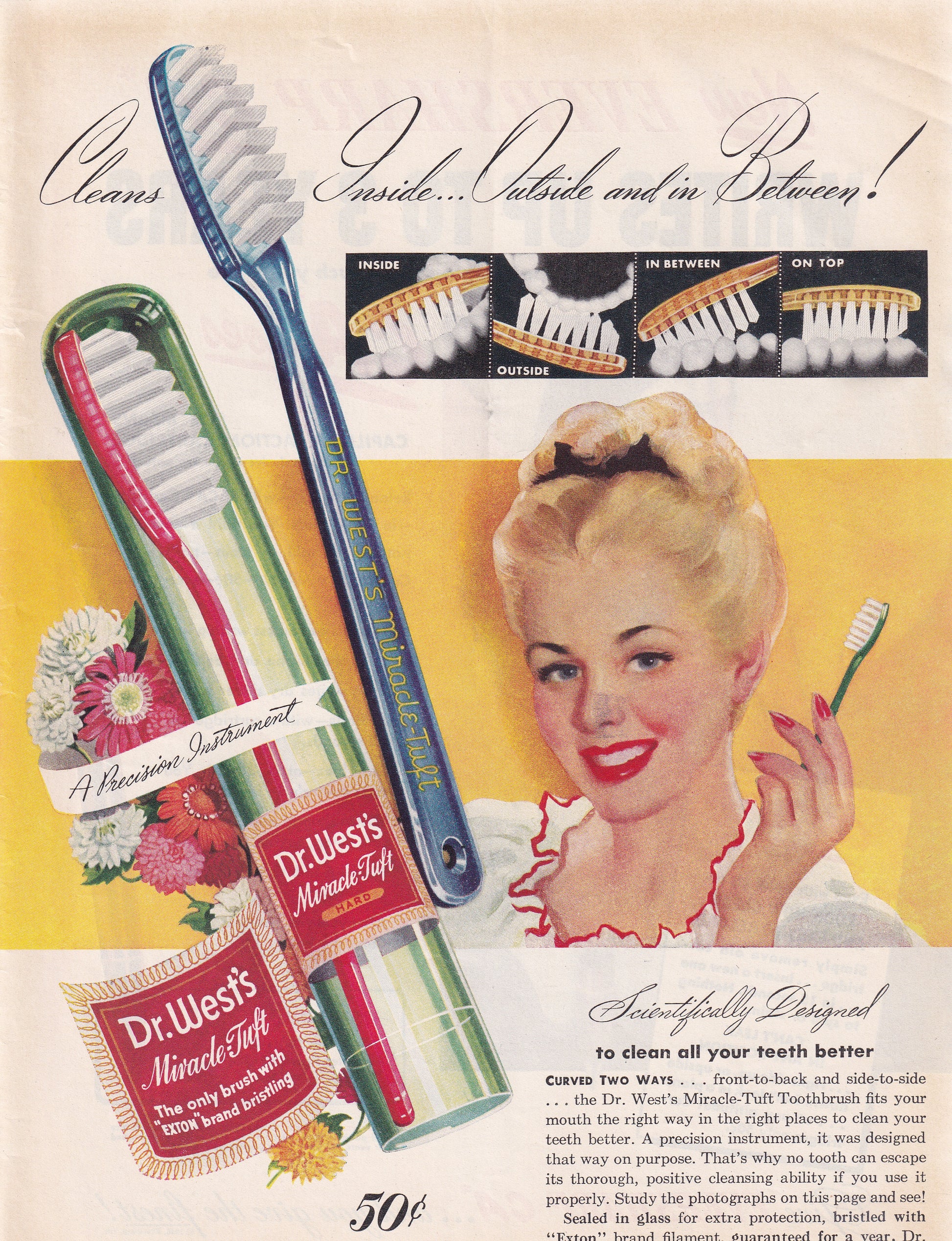 1946 Original Vintage Magazine Ad - Rare Americana - Dr. West's Miracle Tuft Pretty Blonde Girl Hair Up