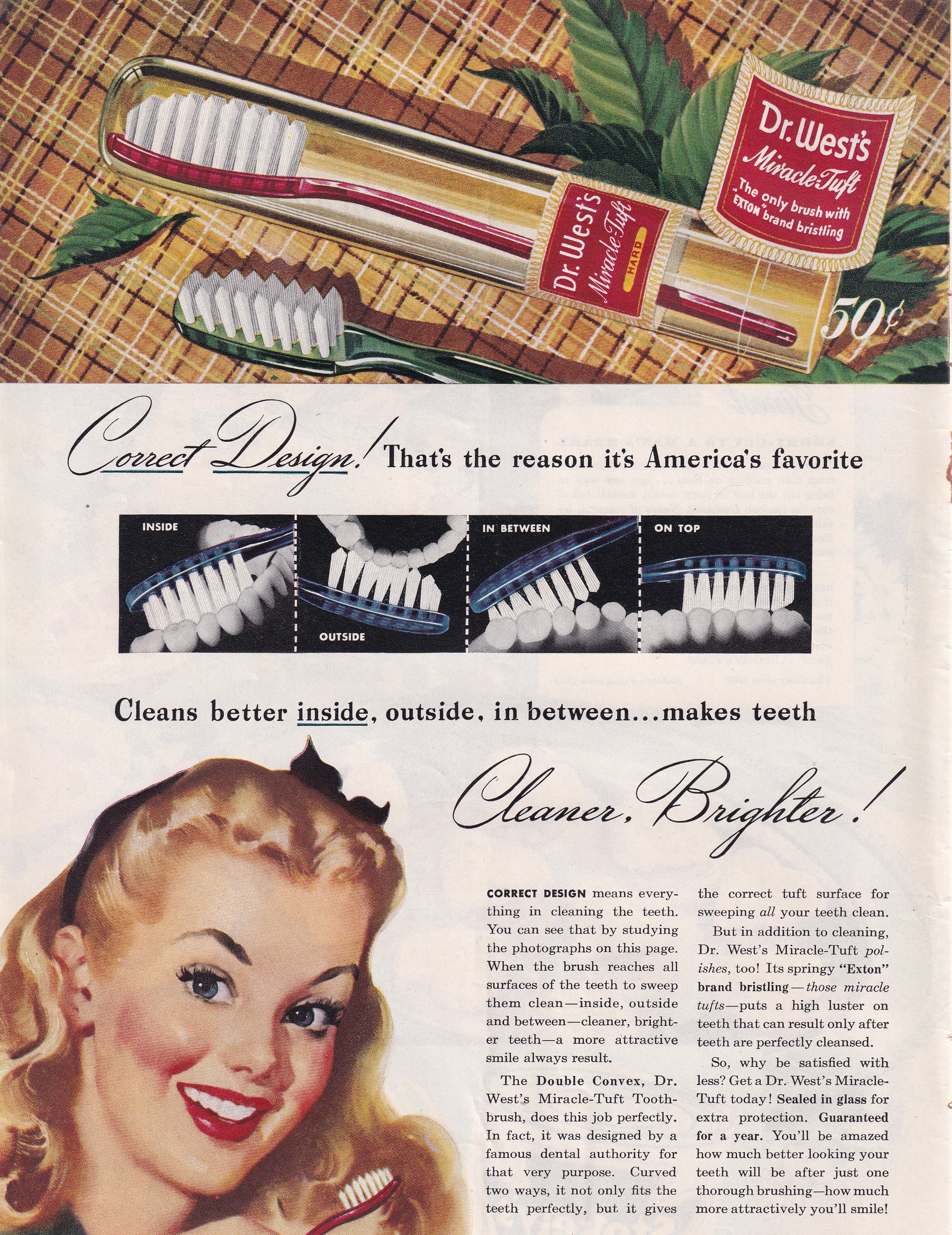 1946 Original Vintage Magazine Ad - Rare Americana - Dr. West's Toothbrush Pretty Girl