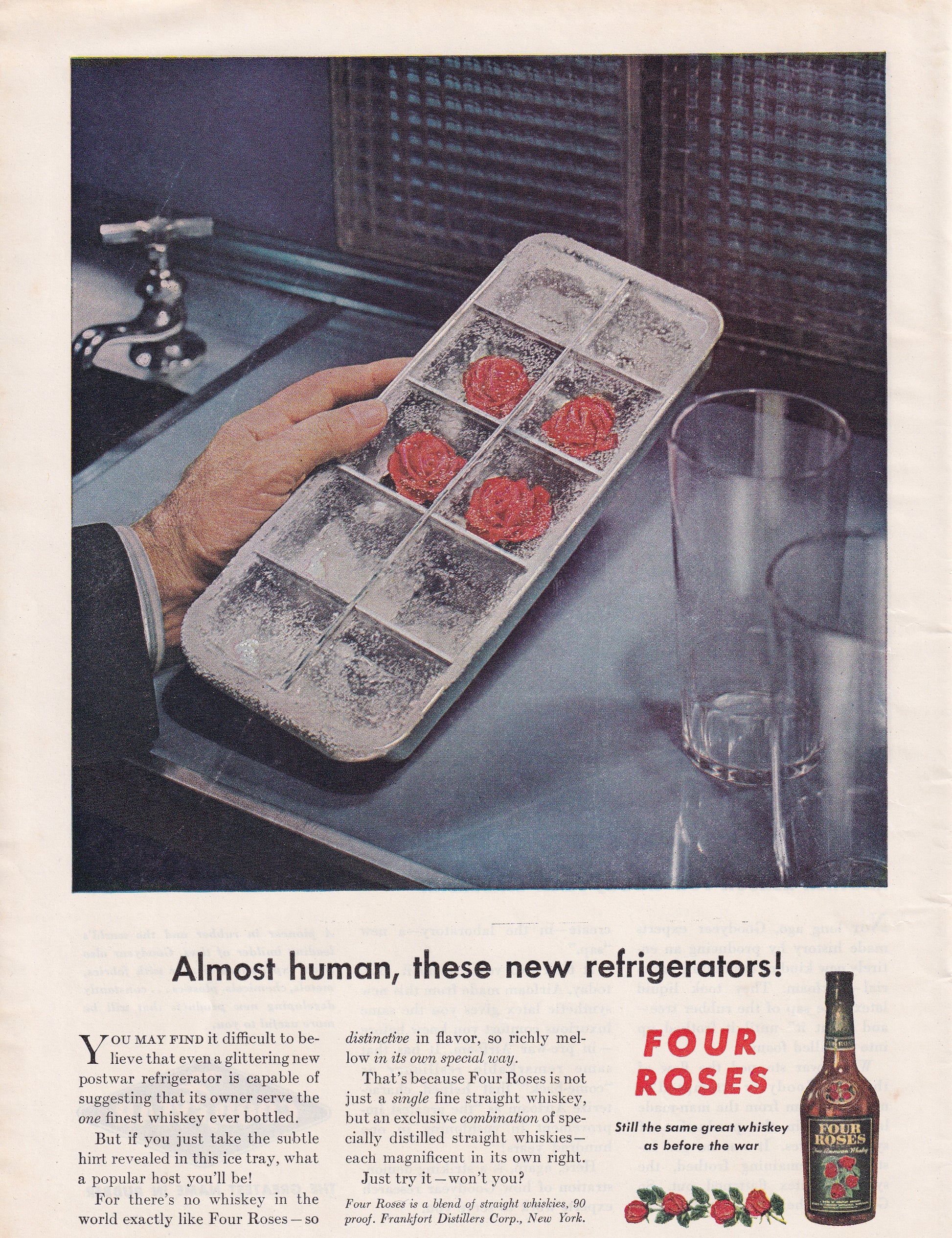 1946 Original Vintage Magazine Ad - Rare Americana - Four Roses Whiskey Ice Cube Tray