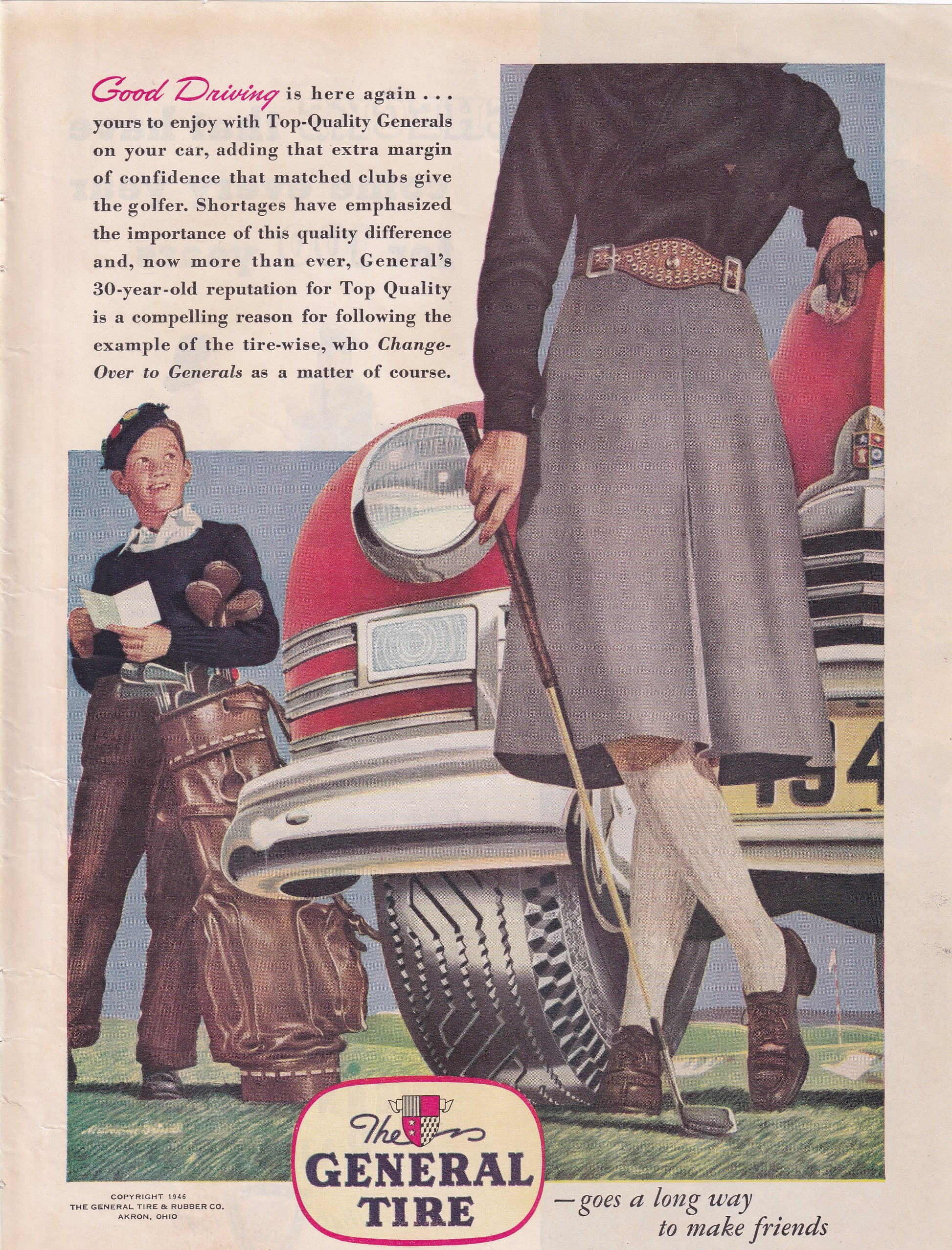 1946 Original Vintage Magazine Ad - Rare Americana - General Tire Good Driving Caddie Golf