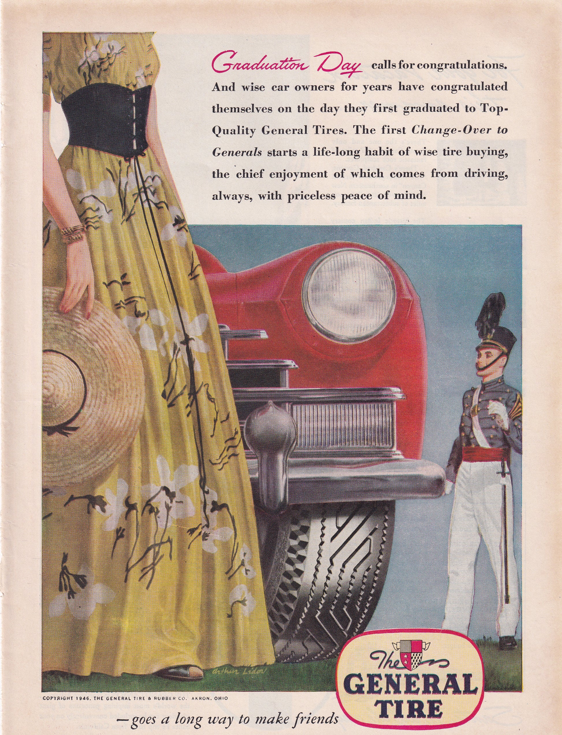 1946 Original Vintage Magazine Ad - Rare Americana - General Tire Graduation Day