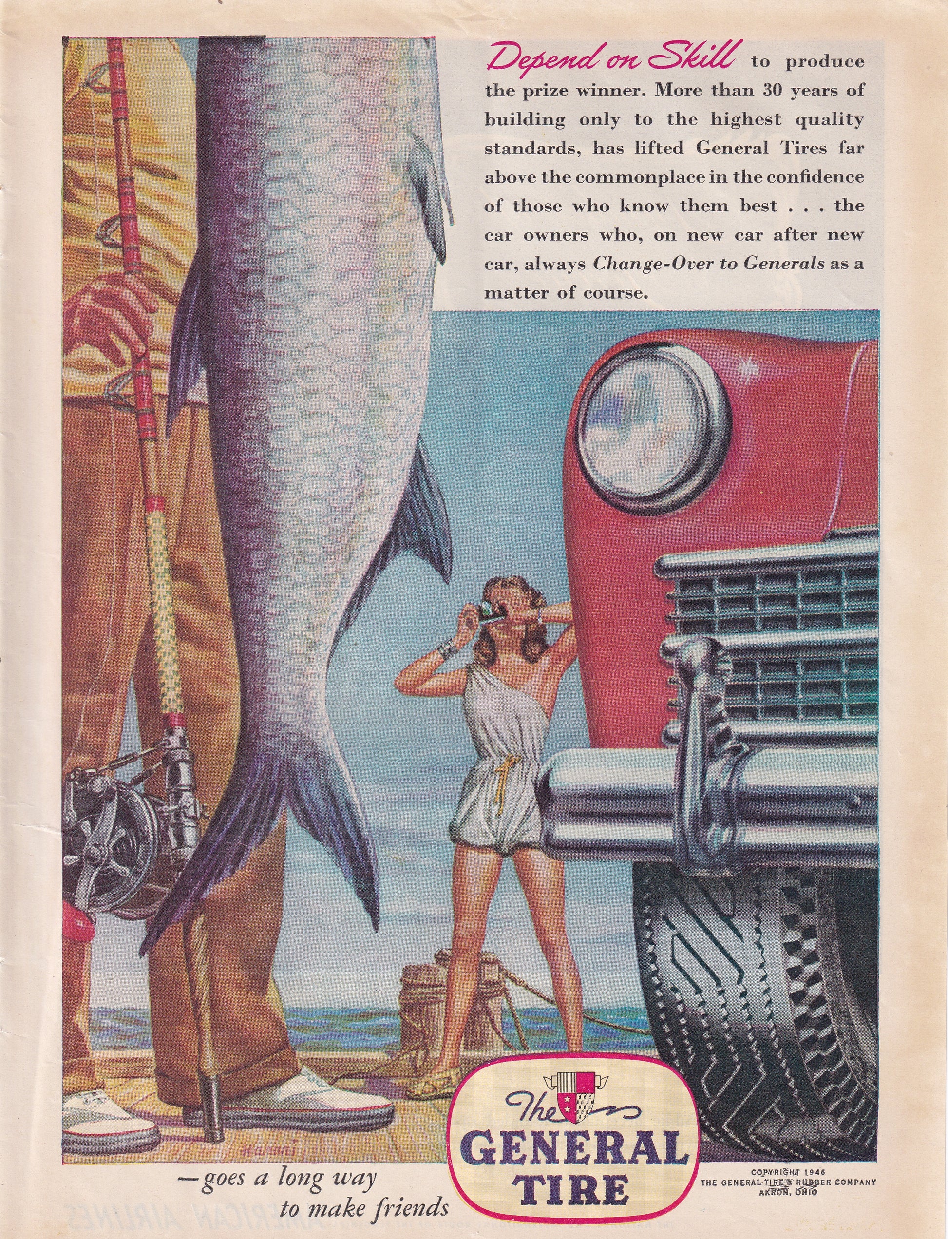 1946 Original Vintage Magazine Ad - Rare Americana - General Tire Prize Fish