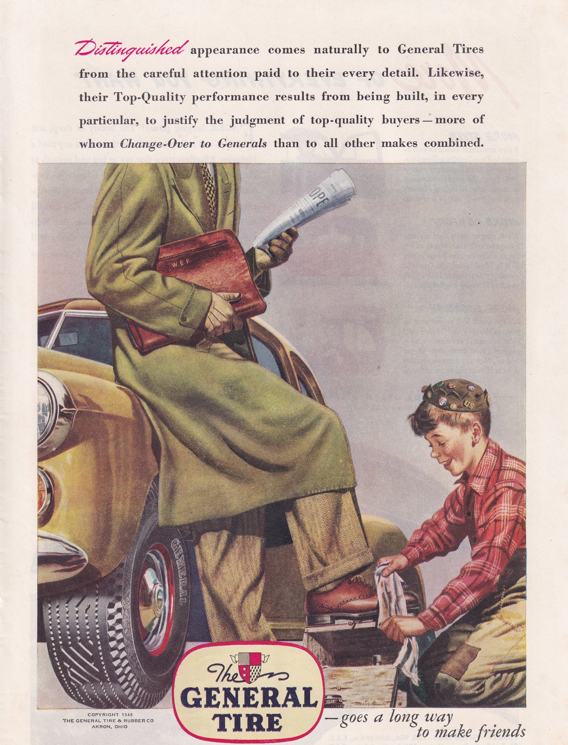 1946 Original Vintage Magazine Ad - Rare Americana - General Tire Shoe Shine Boy 2