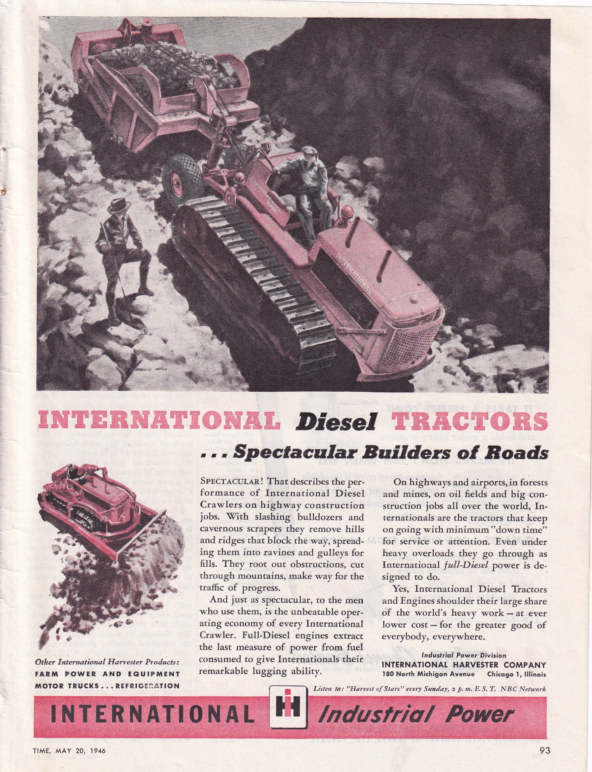 1946 Original Vintage Magazine Ad - Rare Americana - International Harvester Industrial Power Bulldozer