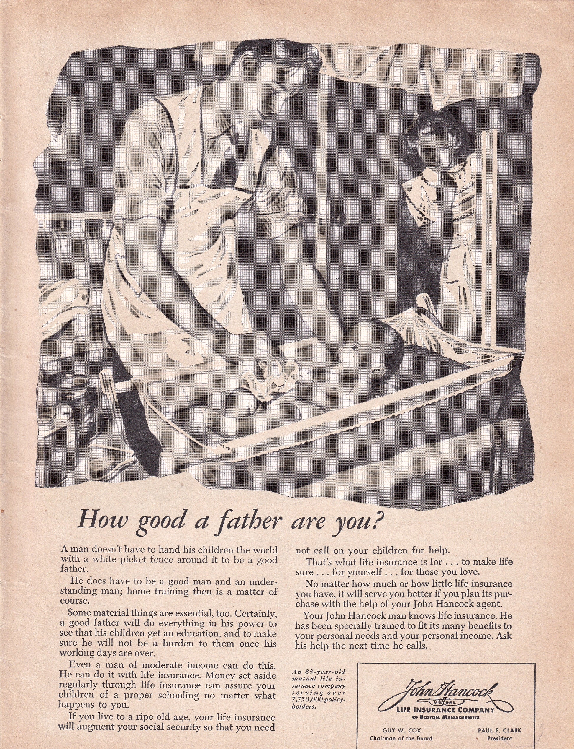 1946 Original Vintage Magazine Ad - Rare Americana - John Hancock Life Insurance How Good of a Father Are You?