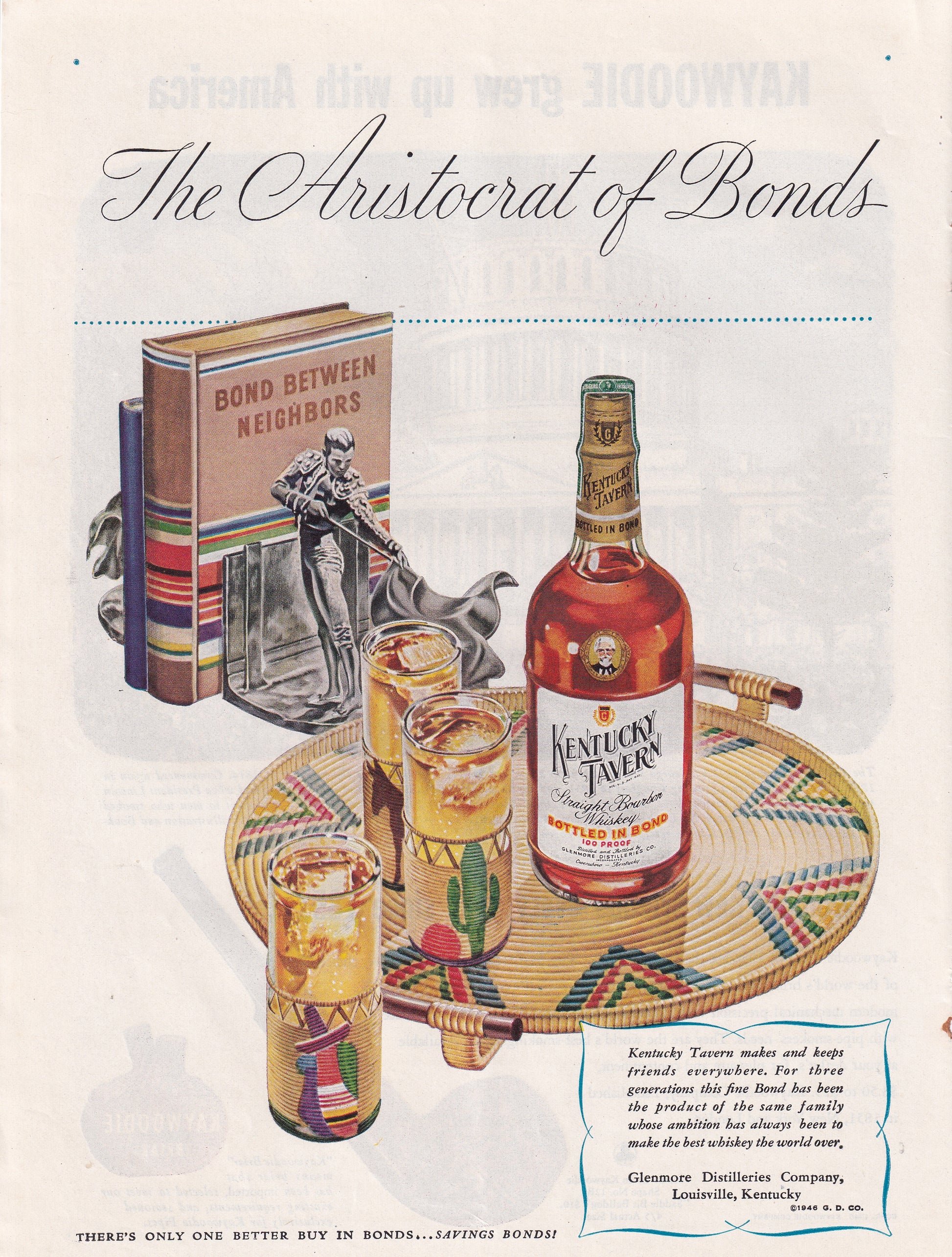 1946 Original Vintage Magazine Ad - Rare Americana - Kentucky Tavern Whiskey Aristocrat of Bonds Books on Shelf
