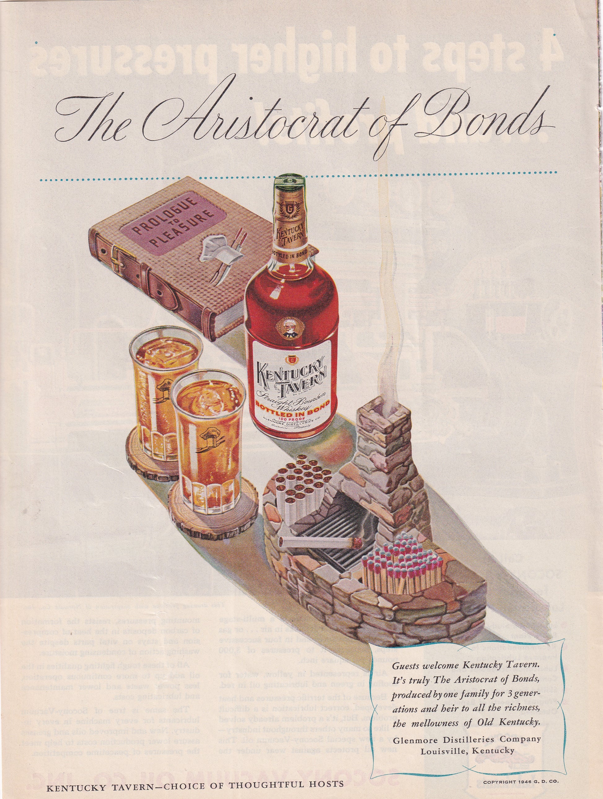 1946 Original Vintage Magazine Ad - Rare Americana - Kentucky Tavern Whiskey Fireplace Ash Tray