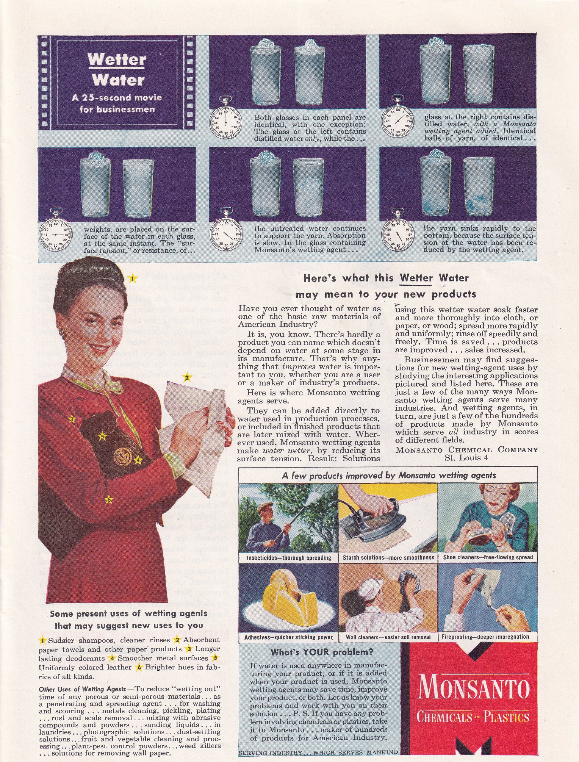 1946 Original Vintage Magazine Ad - Rare Americana - Monsanto Chemicals and Plastics Wetting Water