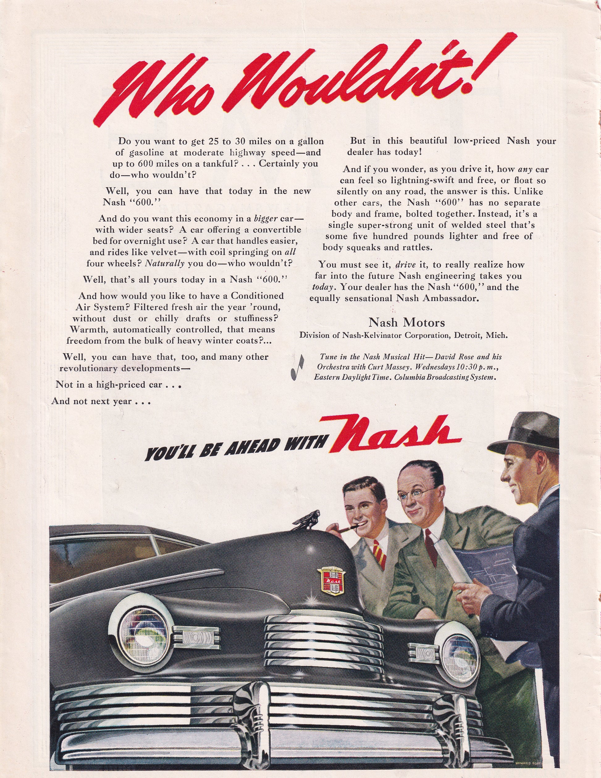1946 Original Vintage Magazine Ad - Rare Americana - Nash Auto Who Wouldn't!