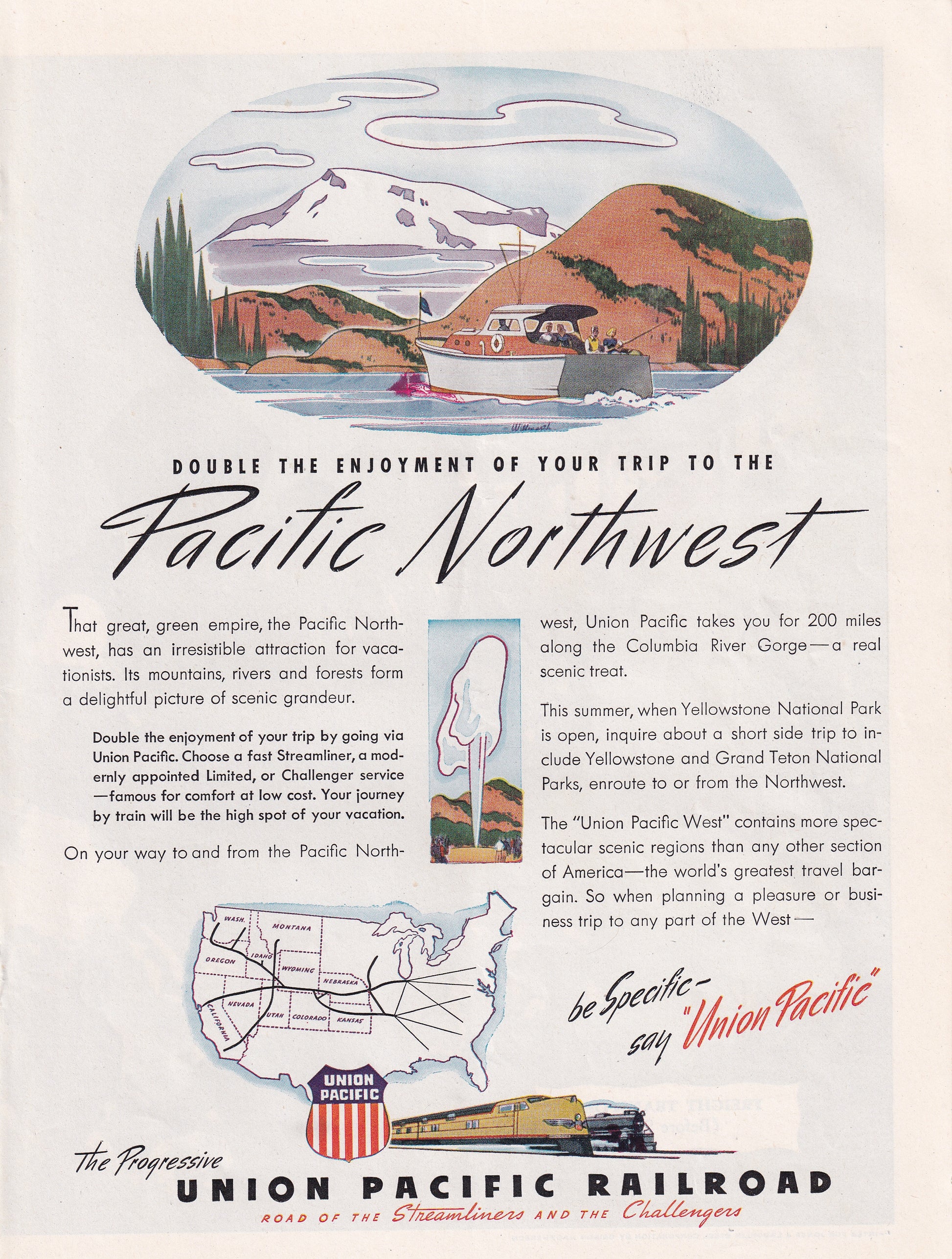 1946 Original Vintage Magazine Ad - Rare Americana - Pacific Northwest Union Pacific Railroad