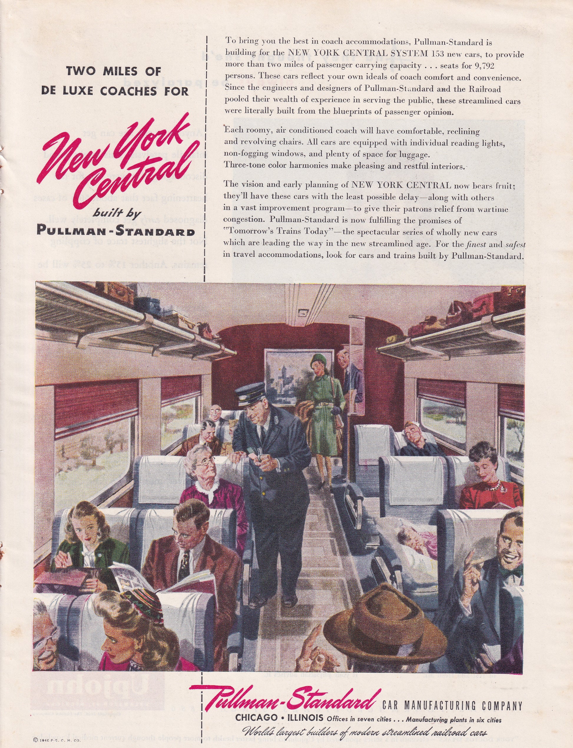 1946 Original Vintage Magazine Ad - Rare Americana - Pullman Standard New York Central
