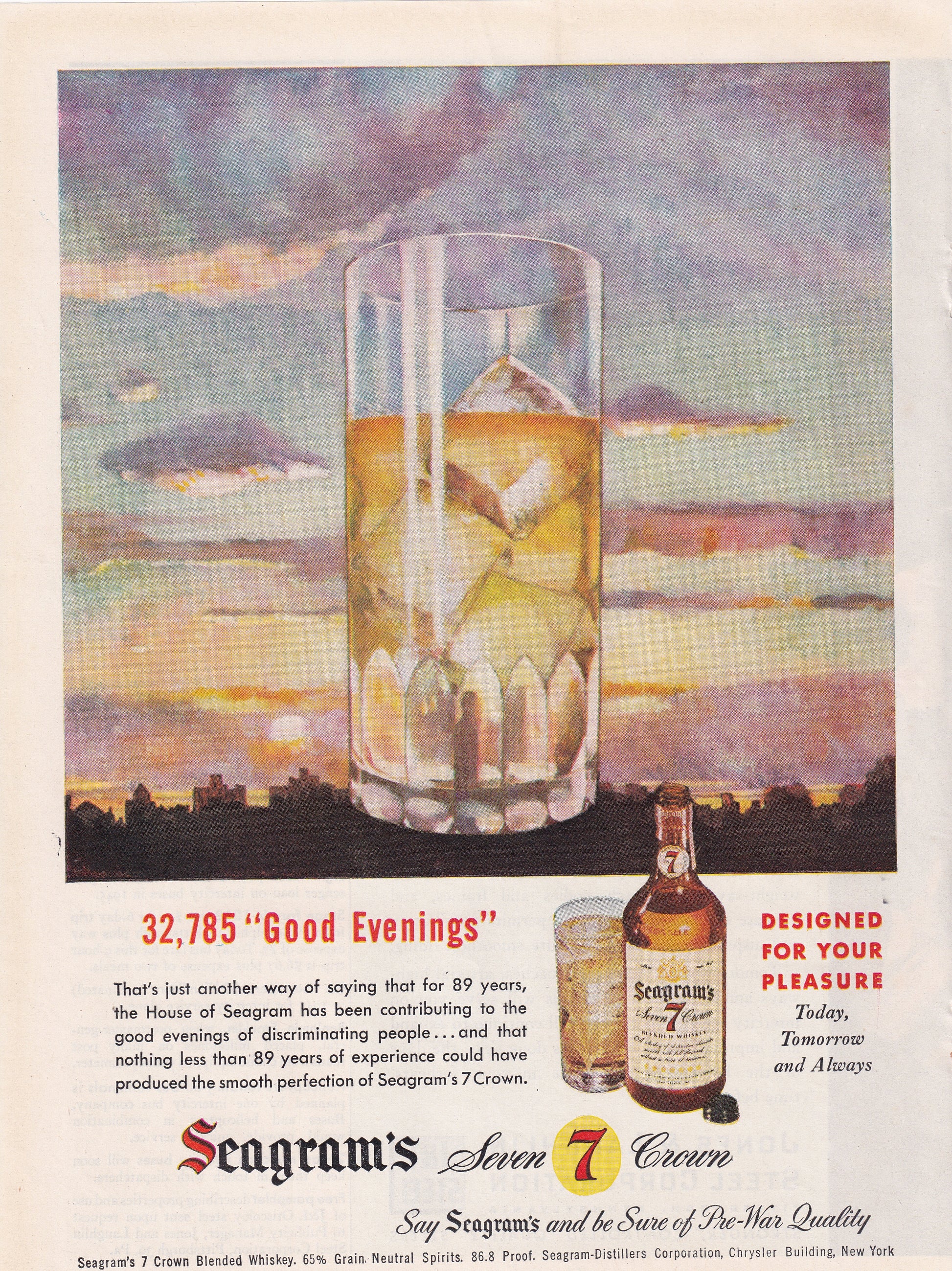 1946 Original Vintage Magazine Ad - Rare Americana - Seagram's 7 Whiskey 32,785 Good Evenings
