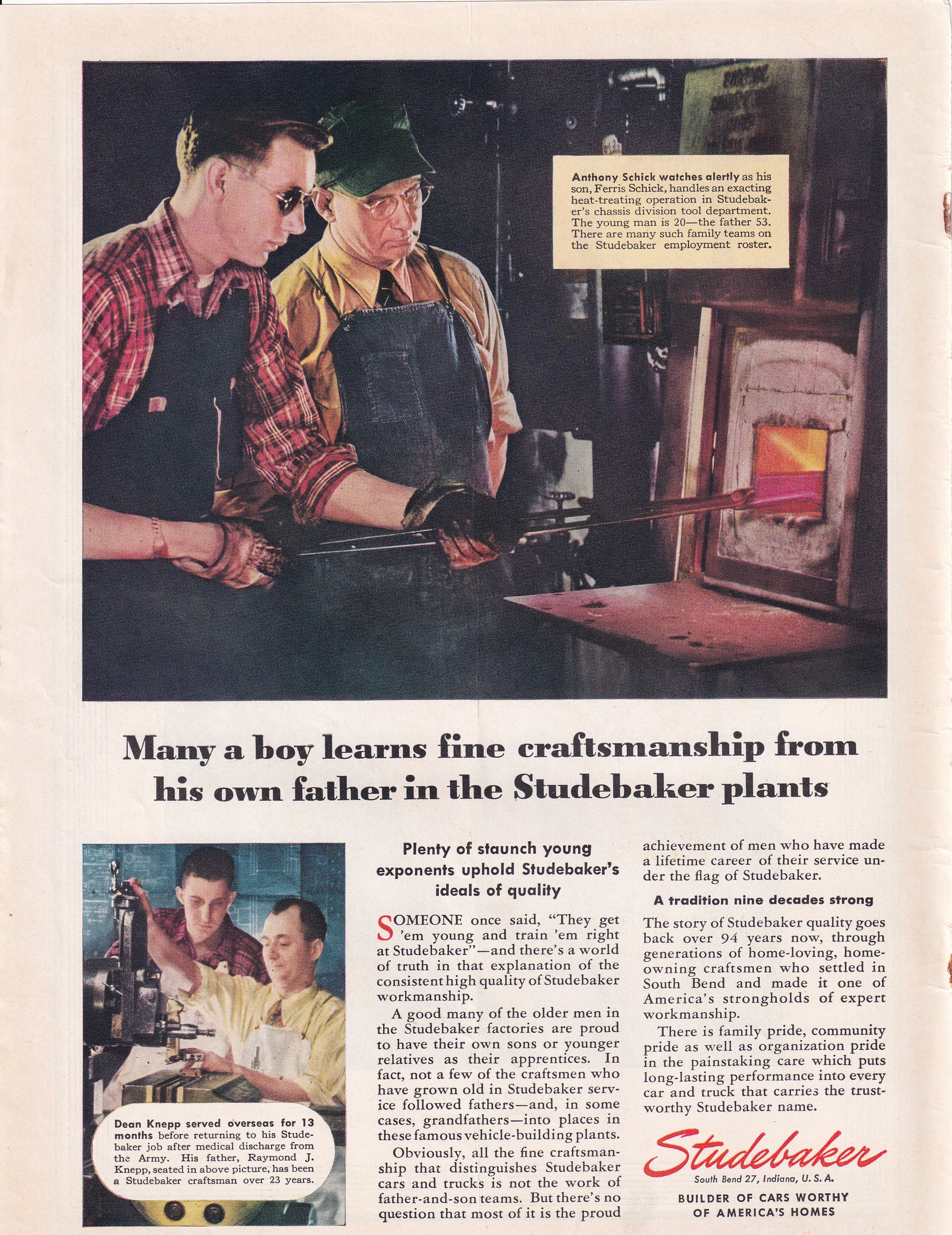 1946 Original Vintage Magazine Ad - Rare Americana - Studebaker Many a Boy Learns From his Father