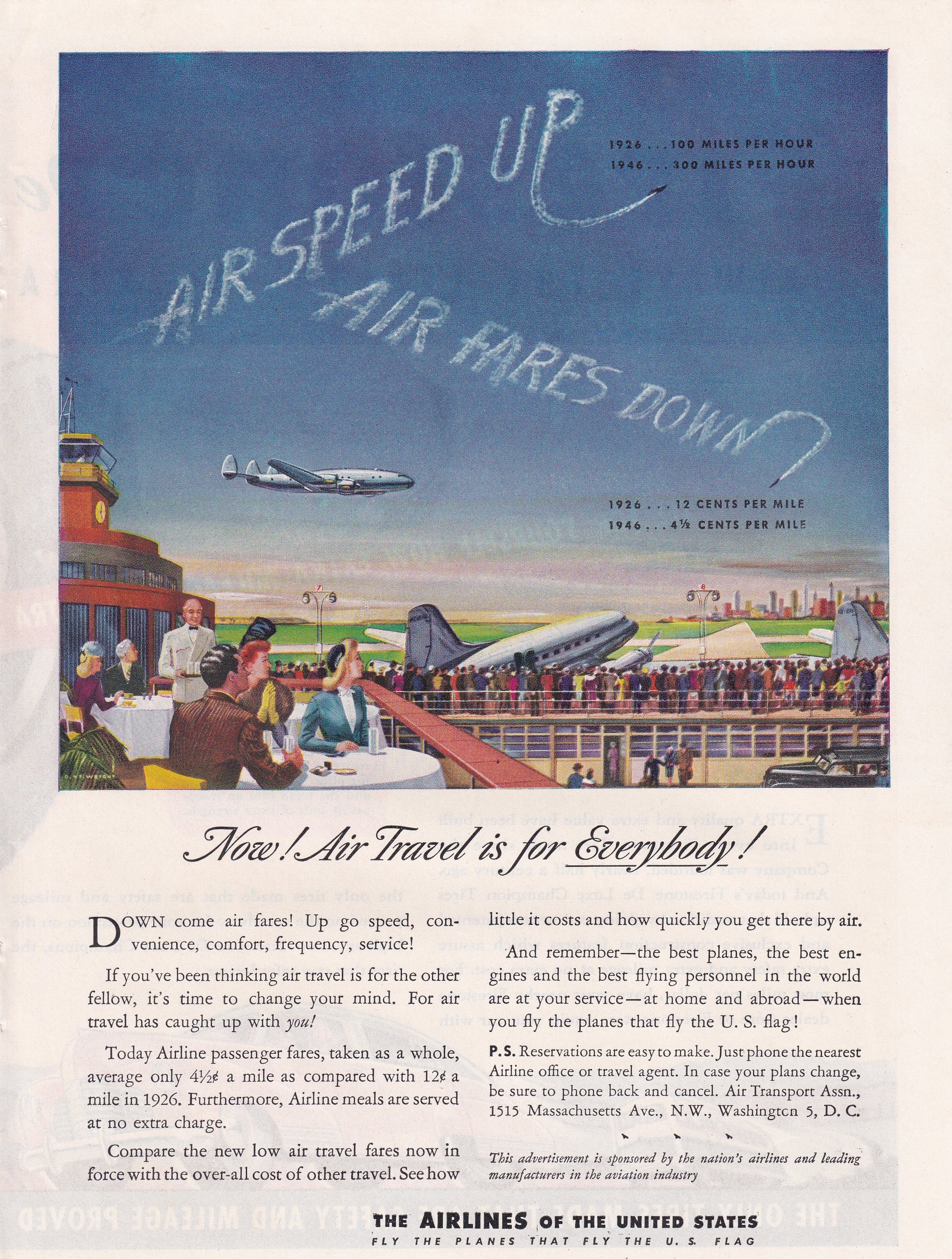 1946 Original Vintage Magazine Ad - Rare Americana - The Airlines of the United States Air Travel is for EVERYBODY
