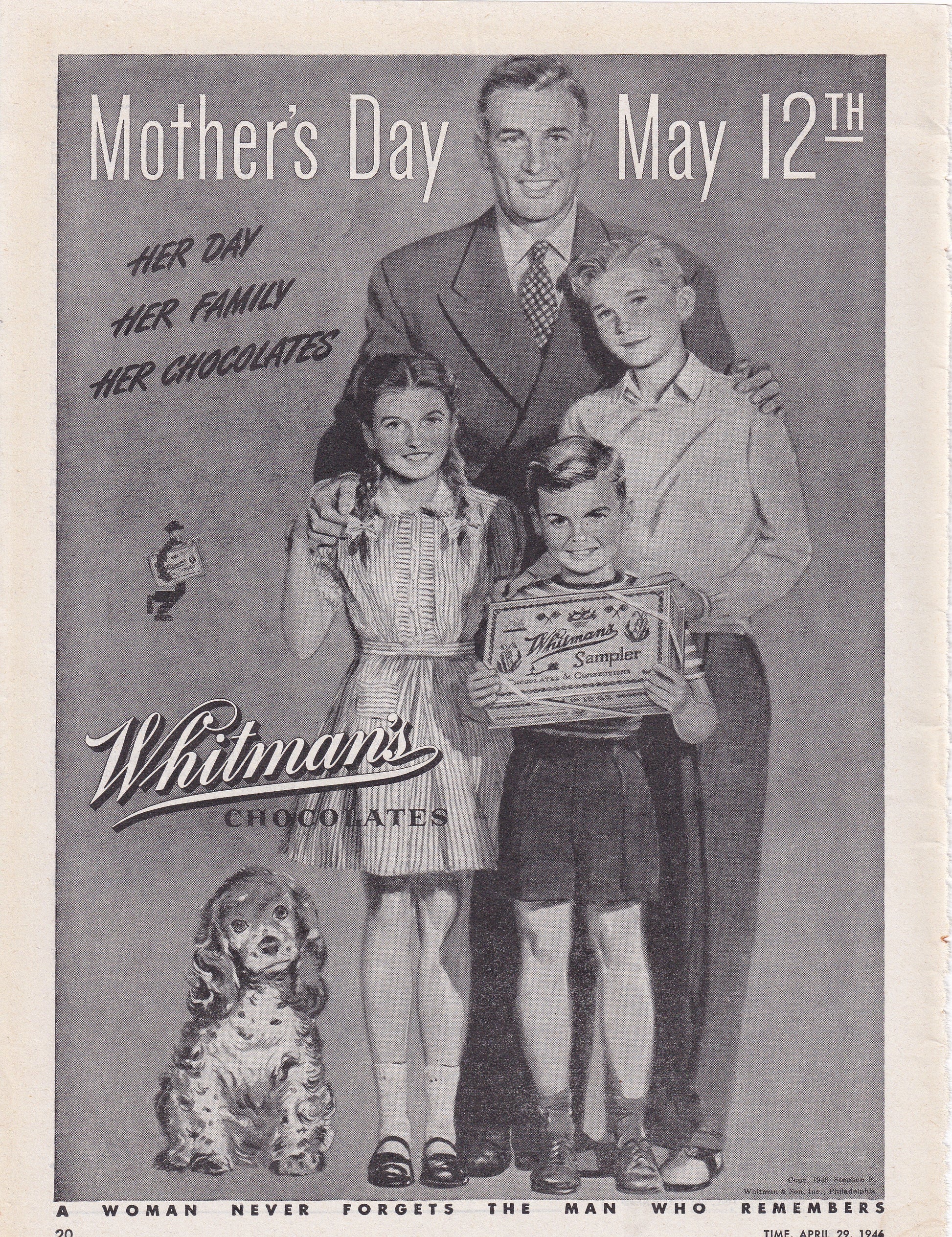 1946 Original Vintage Magazine Ad - Rare Americana - Whitman's Chocolate Sampler Mother's Day May 12th Family Portrait