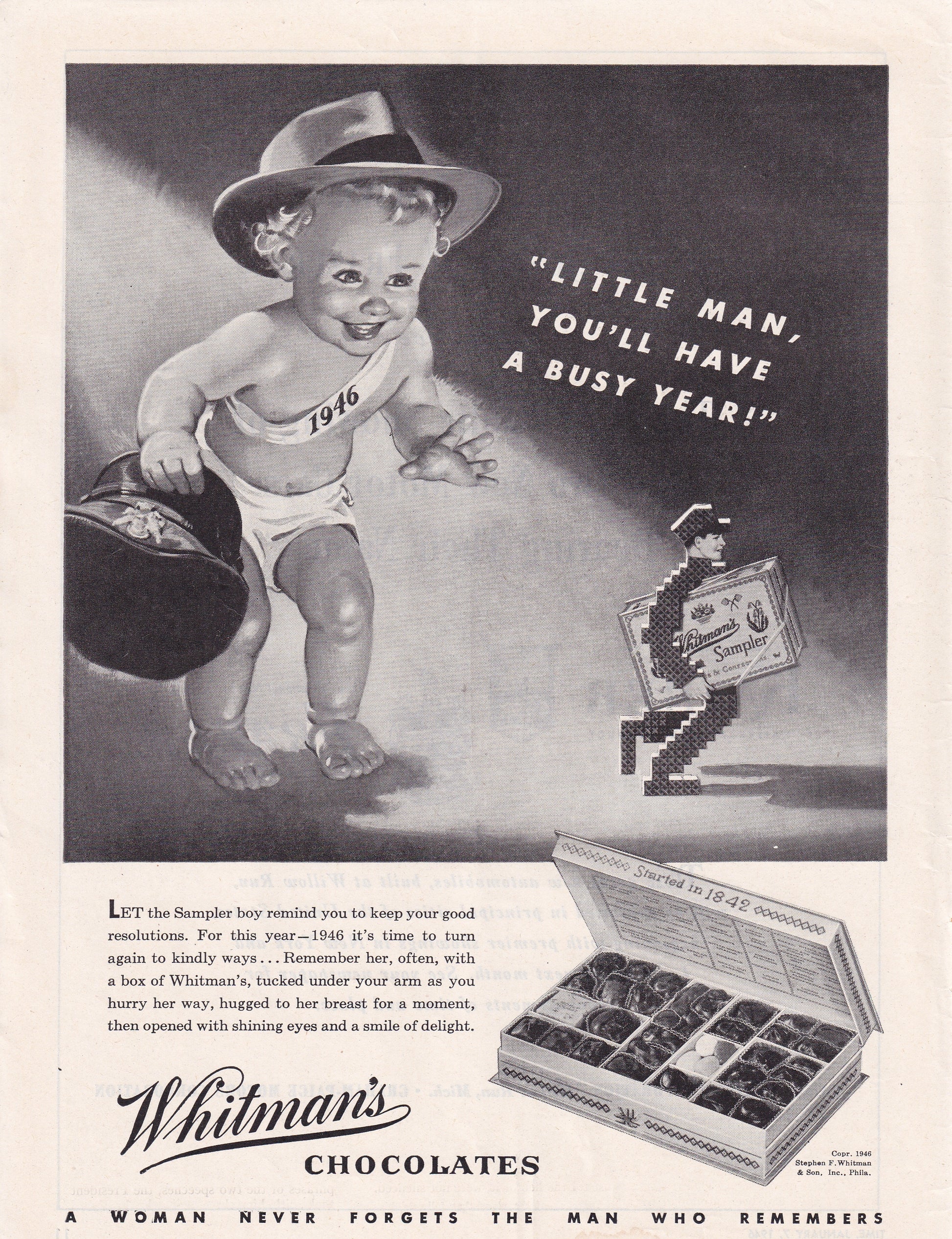 1946 Original Vintage Magazine Ad - Rare Americana - Whitman's Chocolates Little Man You'll Have a Busy Year