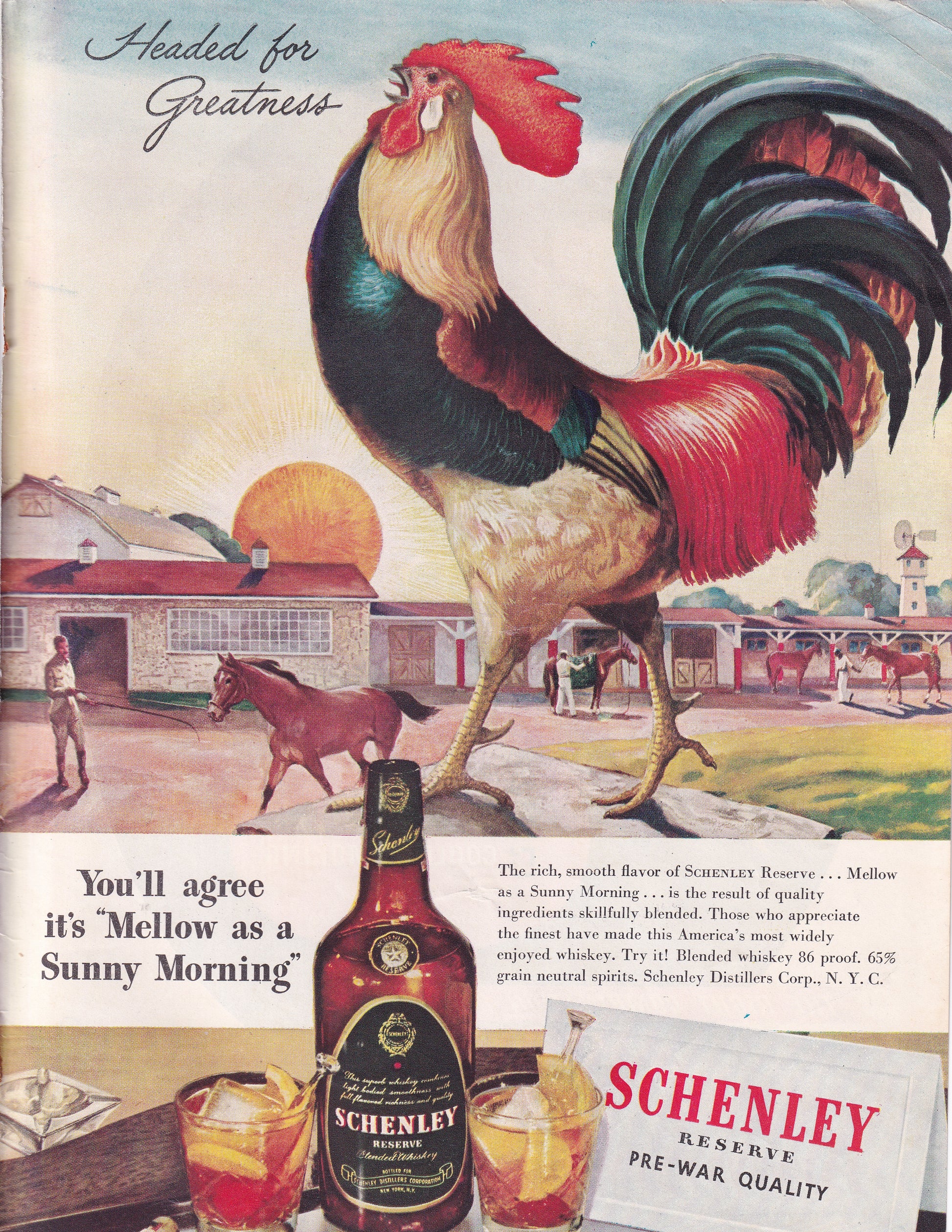 1946 Original Vintage Schenley Whiskey Rooster Headed for Greatness - Rare Americana