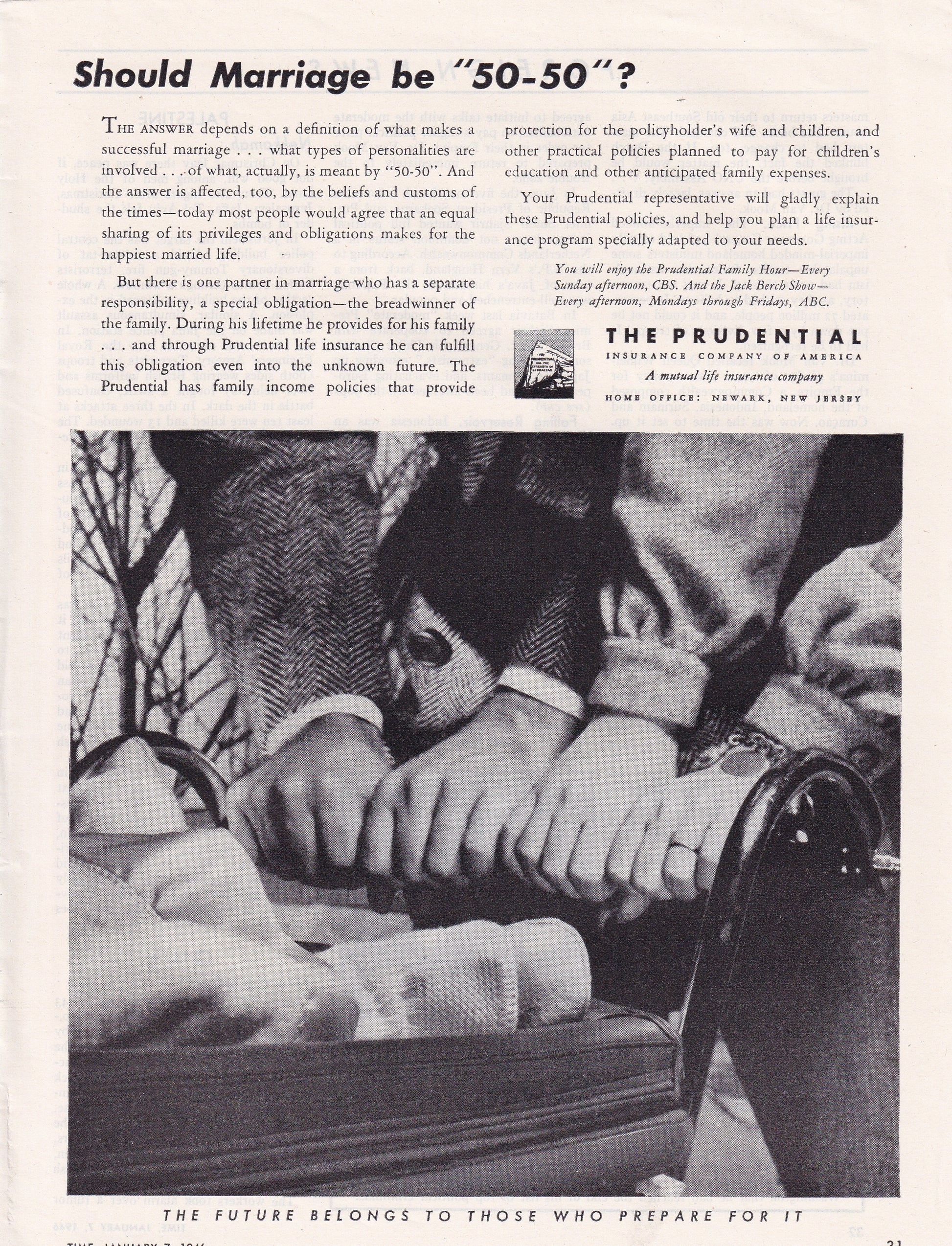 1946 Sexist Original Vintage Magazine Ad - Rare Americana Prudential Insurance Should Marriage be 50/50