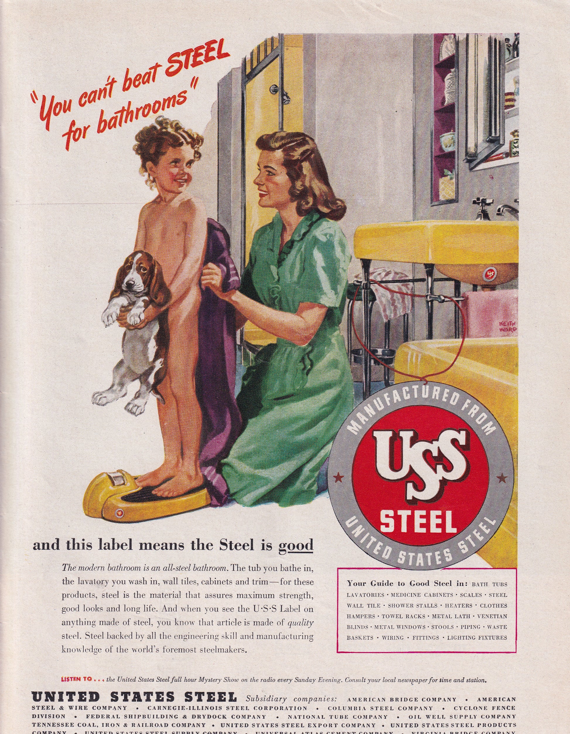 BANNED 1946 Original Vintage Magazine Ad - Rare Americana - USS United States Steel Young Girl on Scale
