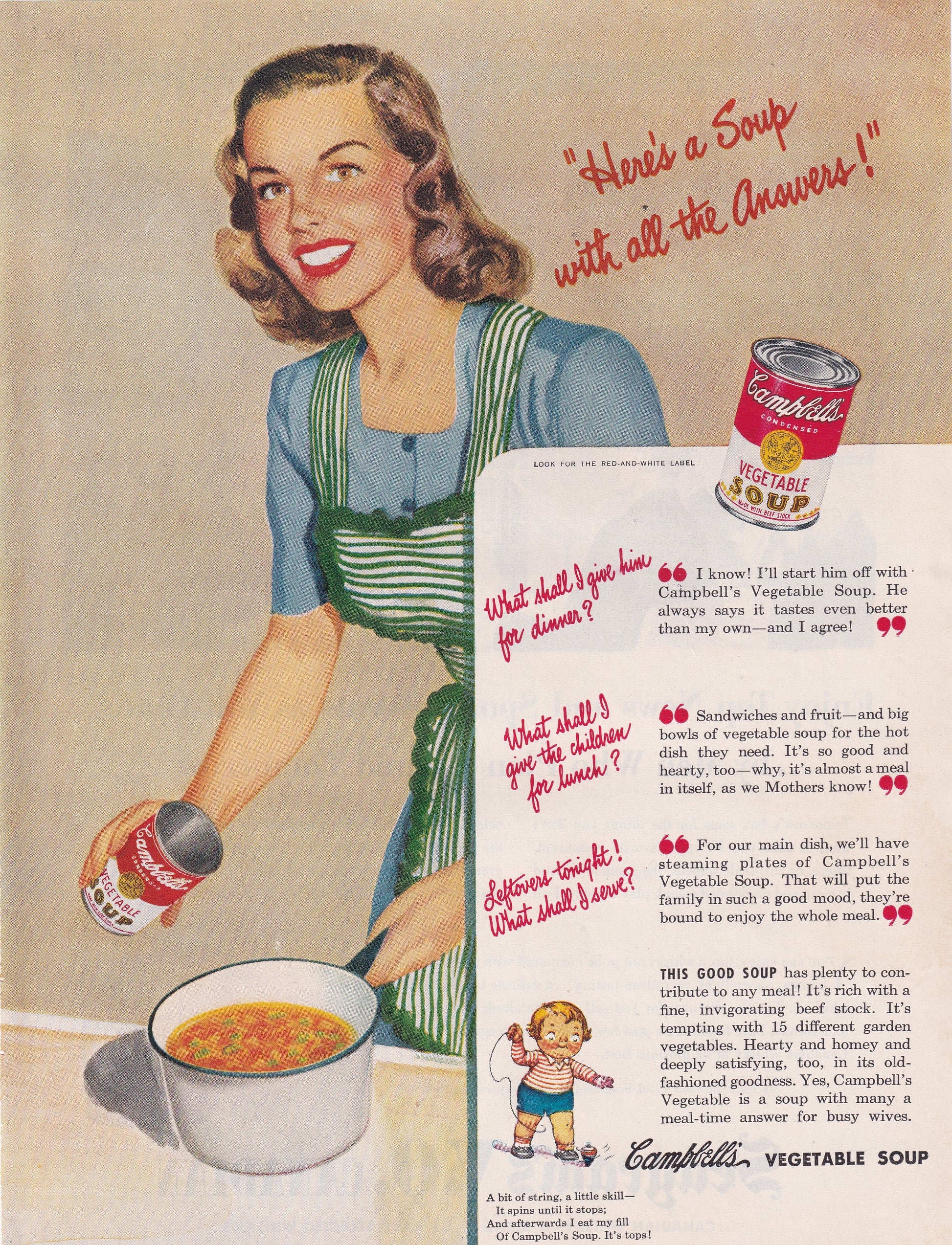SEXIST 1946 Original Vintage Magazine Ad - Rare Americana - Campbell's Soup Vegetable What Shall I Give Him For Dinner