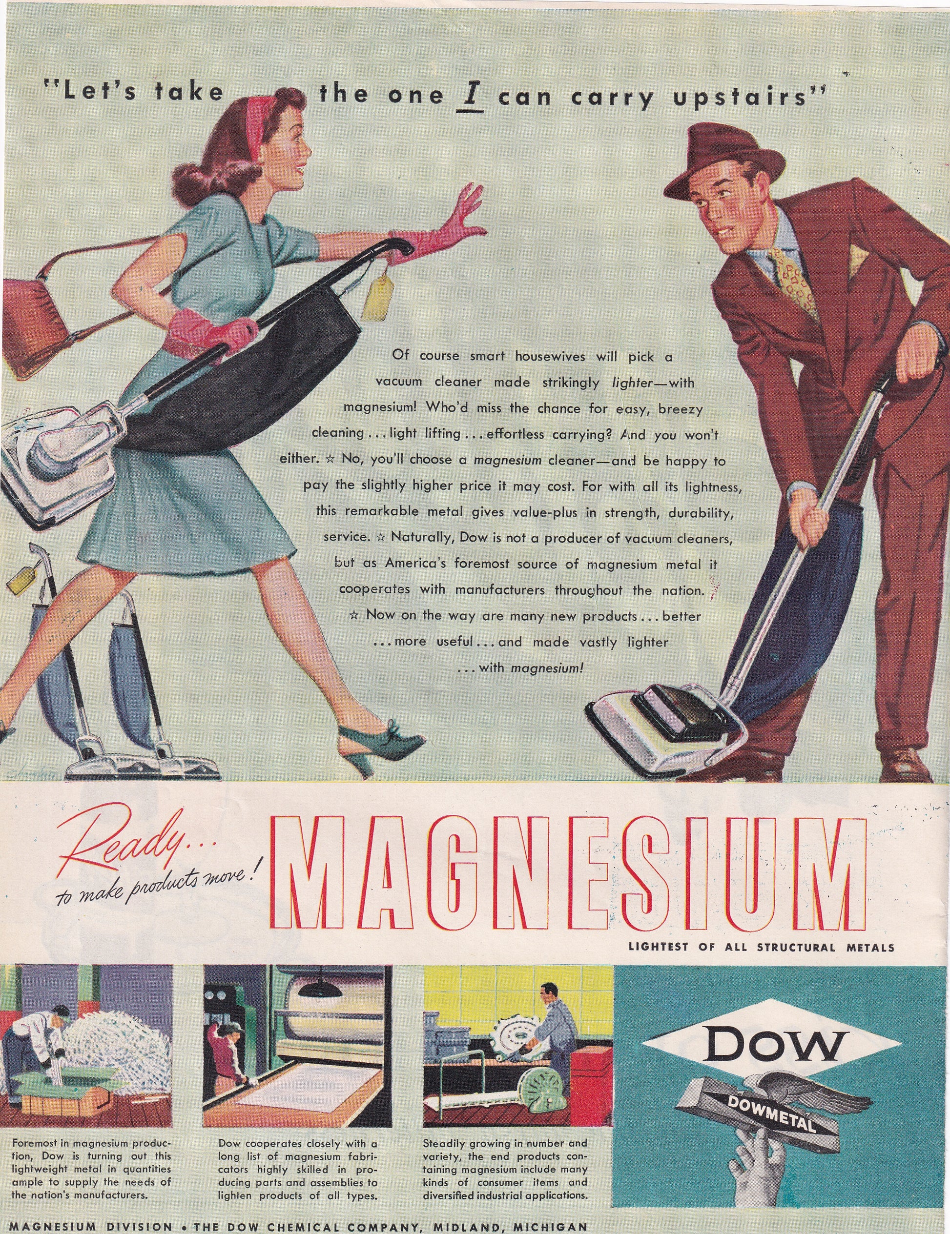 SEXIST 1946 Original Vintage Magazine Ad - Rare Americana Dow Dowmetals Magnesium Housewives Can Carry It Upstairs